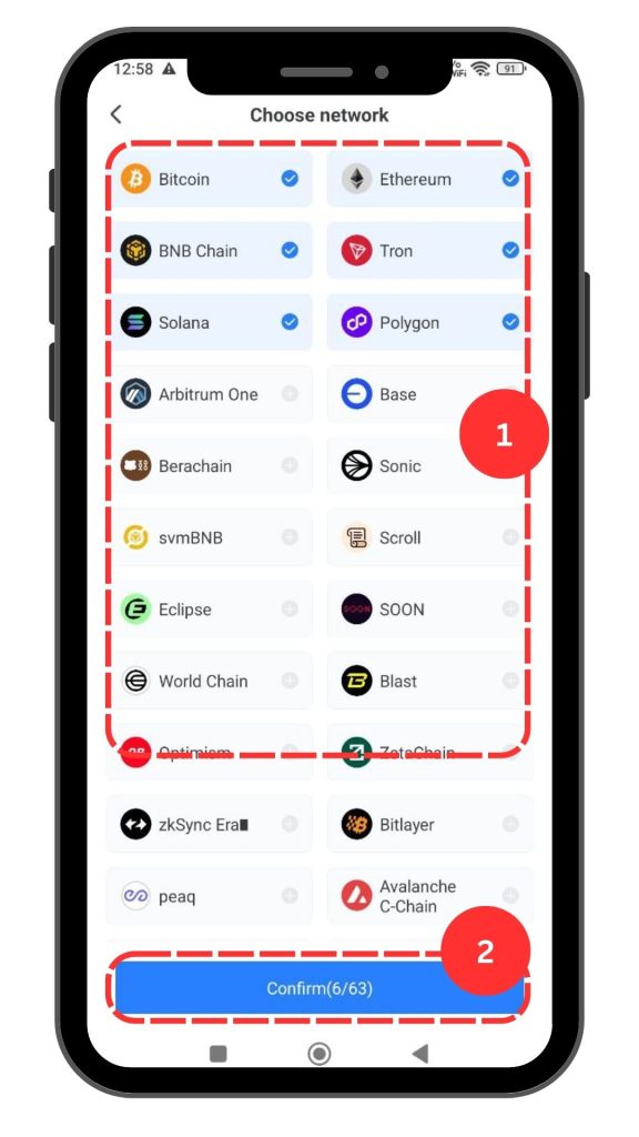 1οΈβ£ Pilih Network yang Anda nak dengan Tandakan Tick di Coin Tersebut.