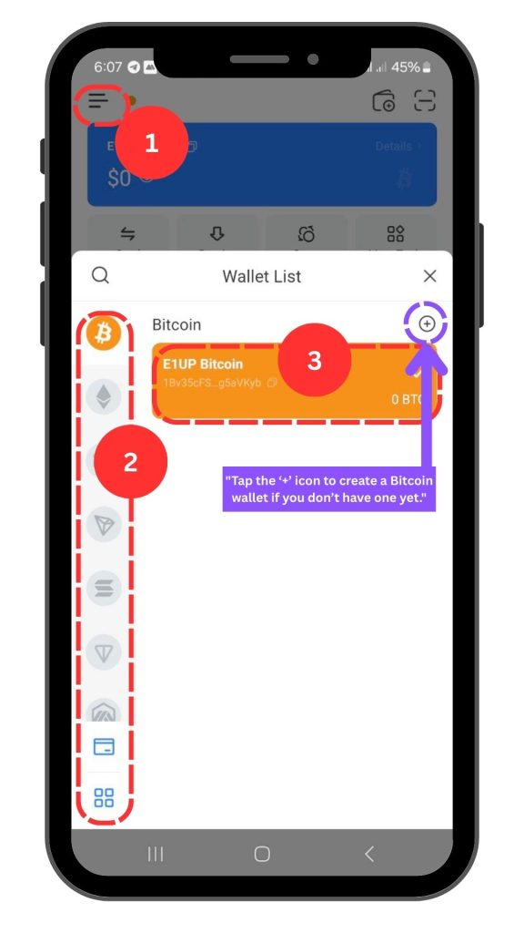 3οΈβ£ Klik atas BItcoin Wallet Anda.