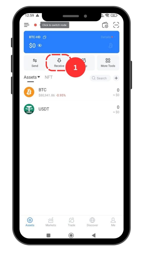 NOTA: Kalau dah ada TokenPocket, Tekan butang Hamburger (tiga line) di atas untuk tambah coin lain – Contoh Bitcoin Wallet. Pergi ke Step 13 untuk Guide.