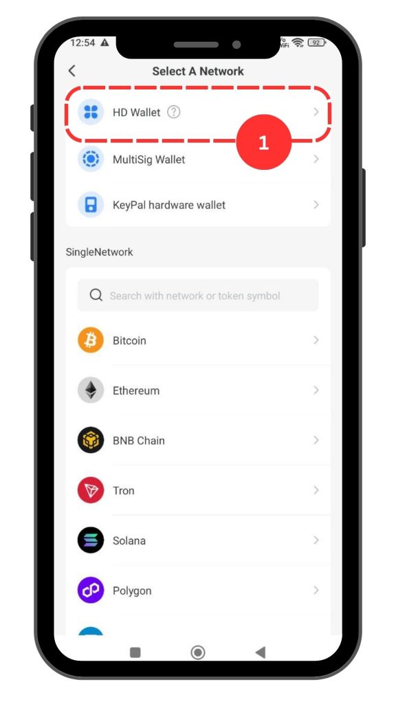 1οΈβ£ Klik HD Wallet untuk buka wallet untuk banyak coin.