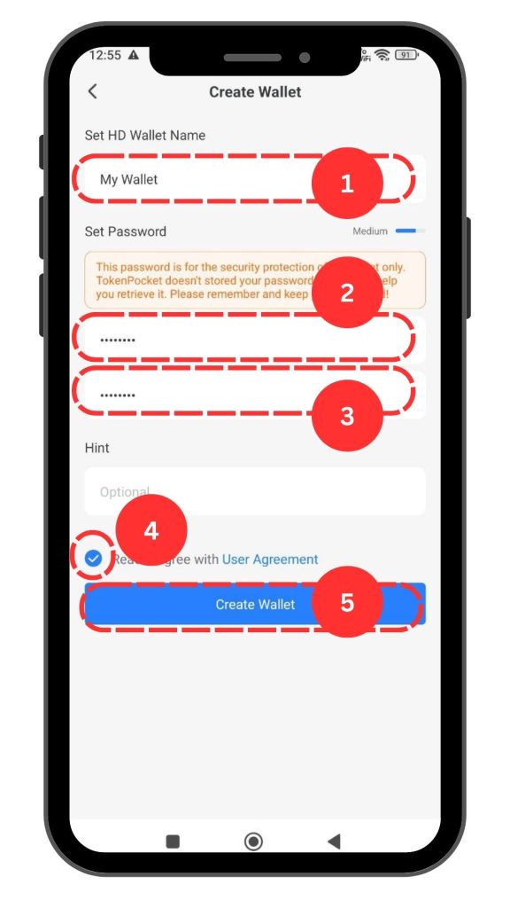 Step 5 - Masukkan Details untuk Setup Wallet HD