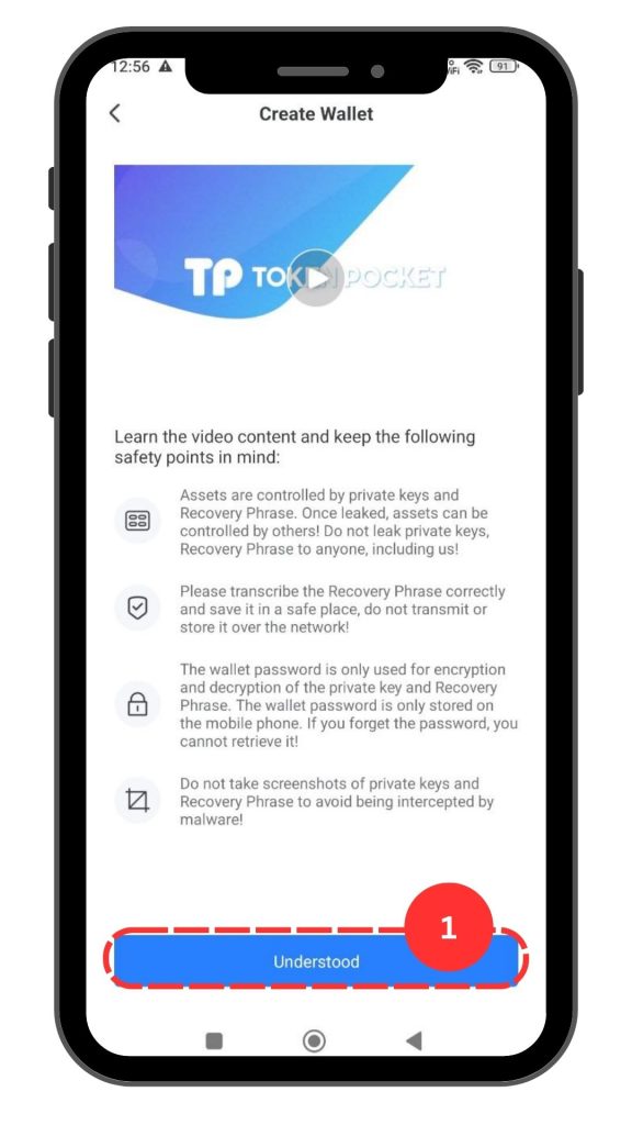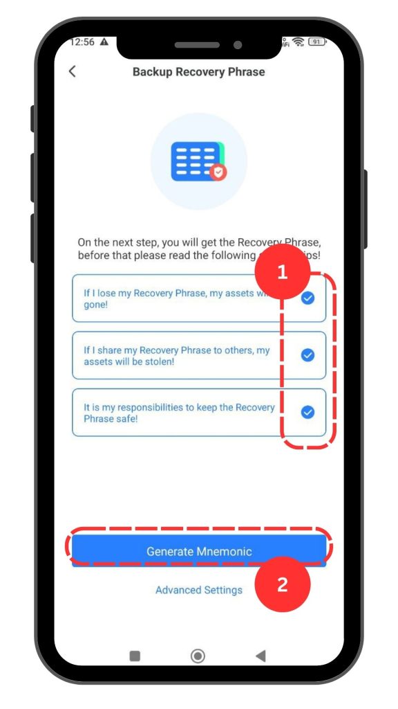 1οΈβ£ Tandakan setiap radio button untuk pastikan anda faham petingnya “Recovery Phrase”